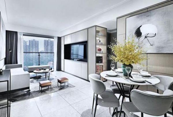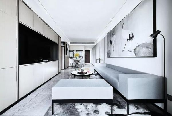 別墅裝飾整體以灰色調的新中式基調下,裝扮出一個簡約的禪意空間,讓空間彌漫中式氣息的同時,也充滿了年輕簡約的味道。